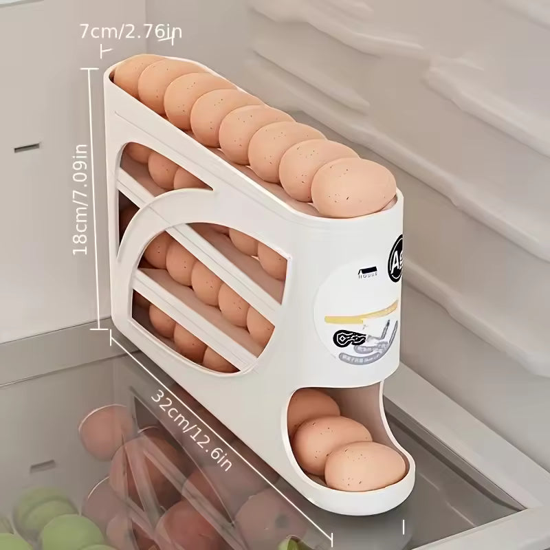 Maximize space and keep your eggs organized with the 3-Tier Rolling Egg Storage Container. Designed to hold up to 24 eggs, this smart organizer features a gravity-fed rolling design that automatically slides eggs forward for easy access. Perfect for refrigerators, kitchen counters, or pantry shelves, it adds both convenience and cleanliness to your food storage.