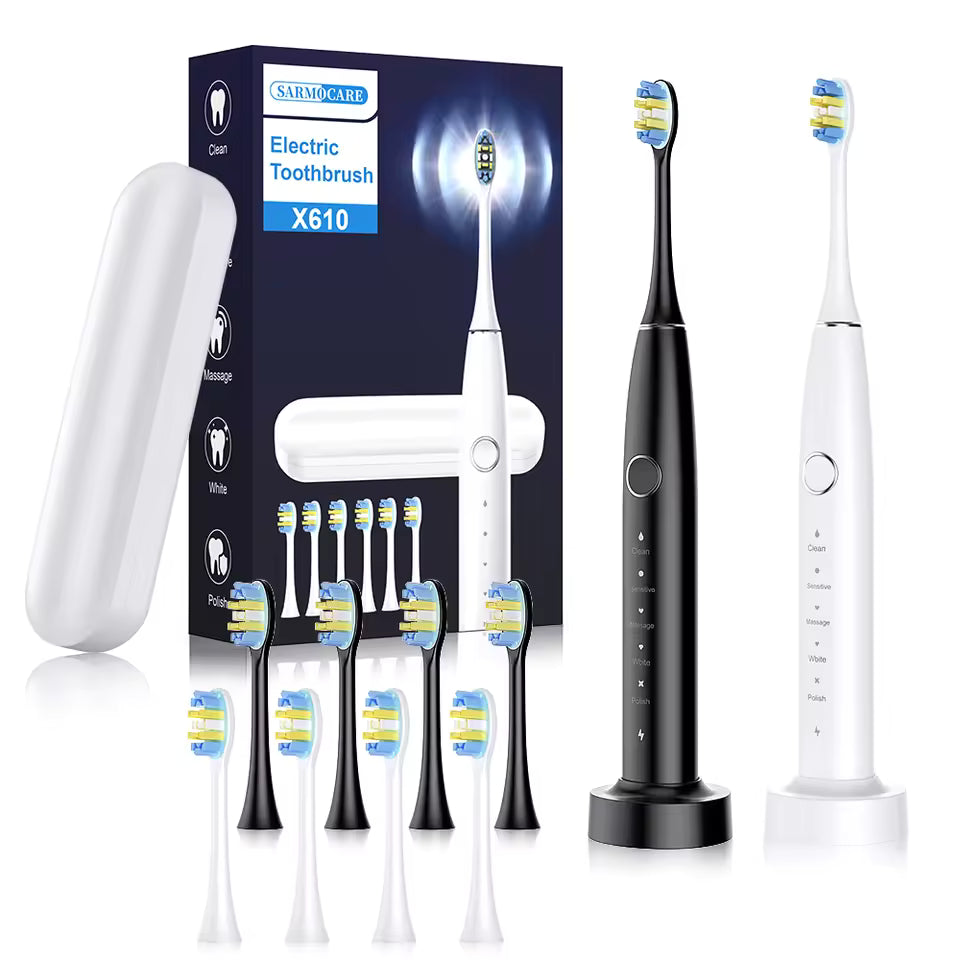 Experience next-level oral hygiene with the Sarmocare X610 Sonic Electric Toothbrush – designed to deliver professional-level teeth cleaning at home or on the go. With 6 replaceable brush heads, a smart 2-minute timer, and advanced sonic vibration technology, it helps remove plaque, whiten teeth, and promote gum health.